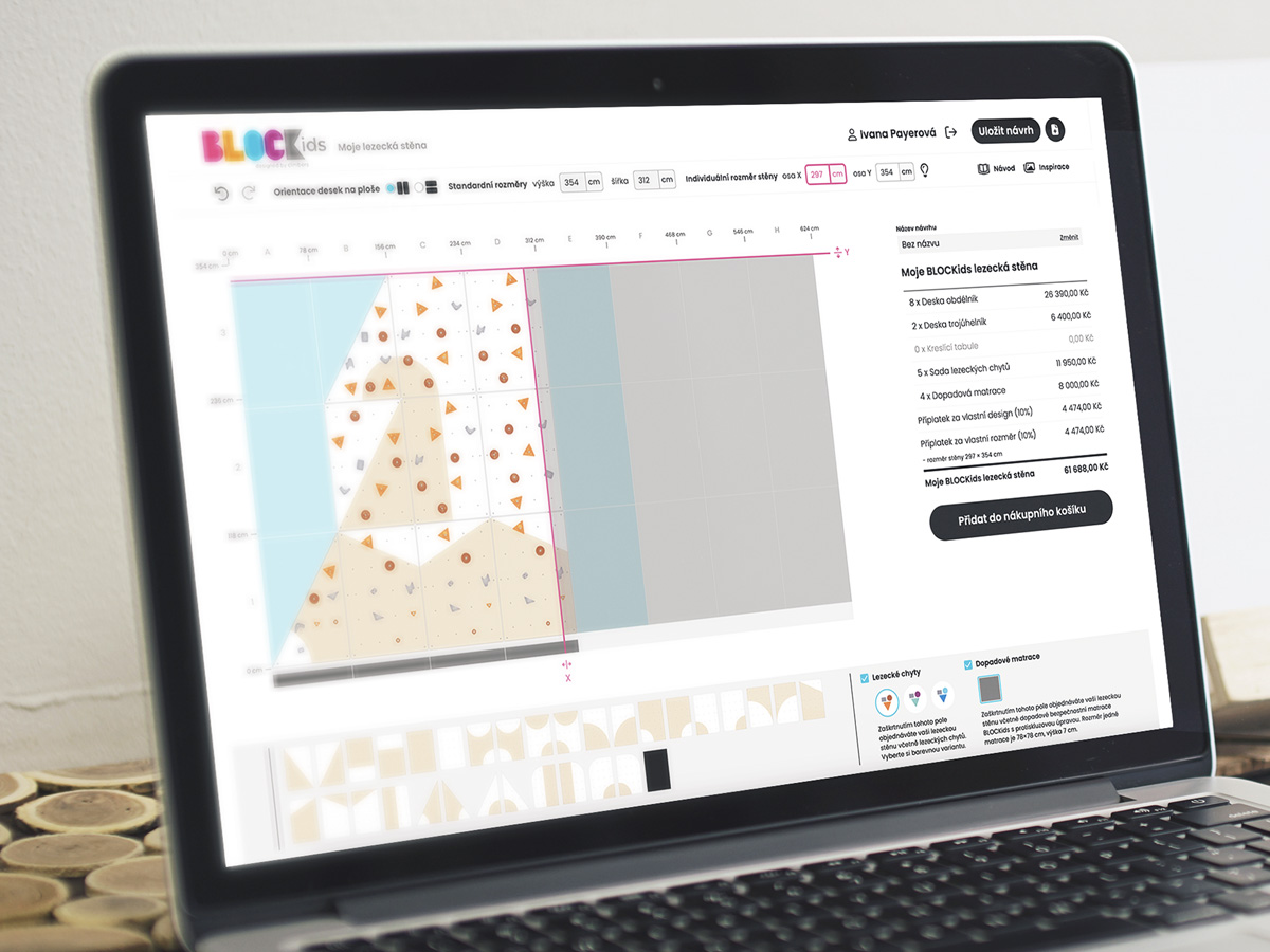 The configurator has been optimized for devices with a screen resolution of 1920×1080 px or higher. A large workspace allows you to easily arrange and rearrange the boards, giving you a clearer vision of your climbing wall design.